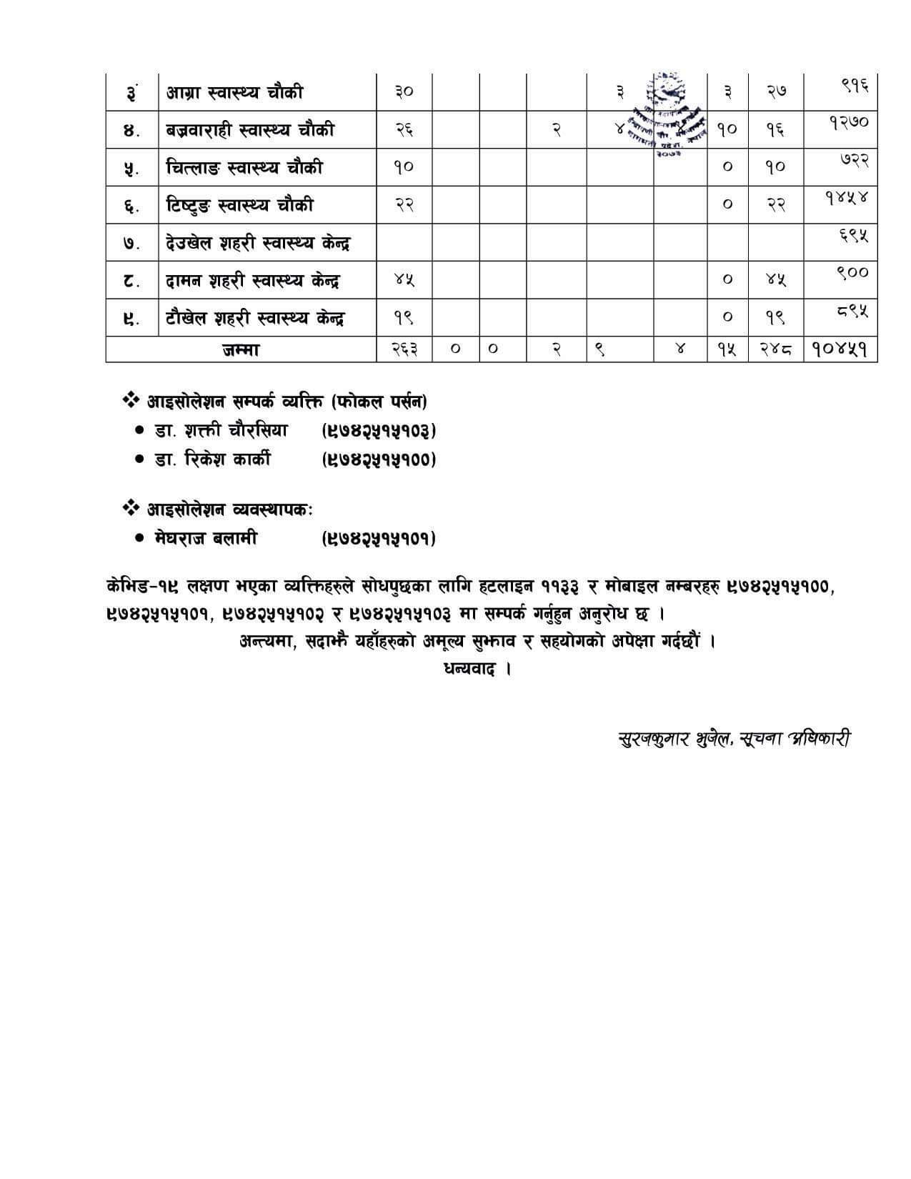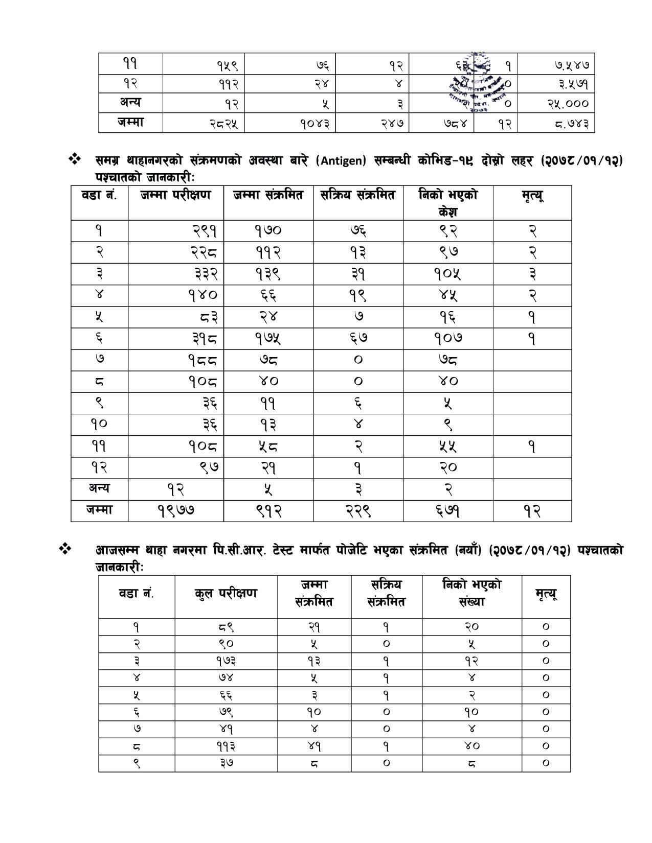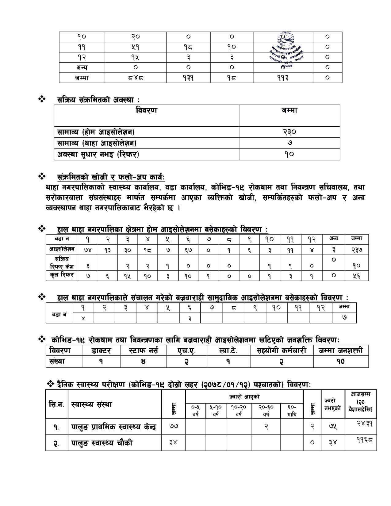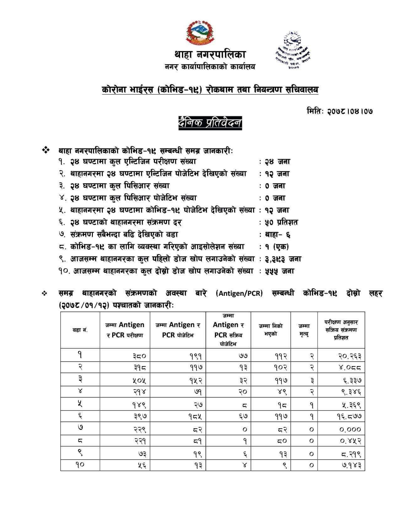 थाहानगरमा कोरोनाको तथ्यांक जस्ताको तस्तै: